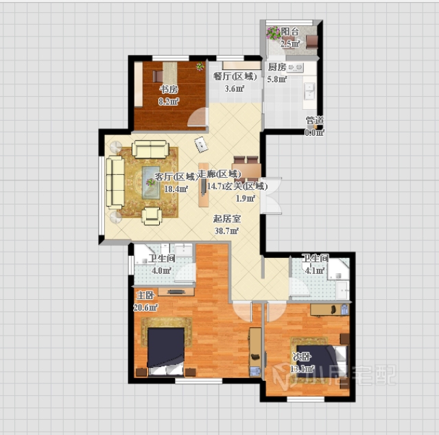 臥室旁的半開(kāi)放式書(shū)柜,可以存放部分書(shū)籍,側(cè)面還設(shè)置隔板,可以擺放各種小物件。