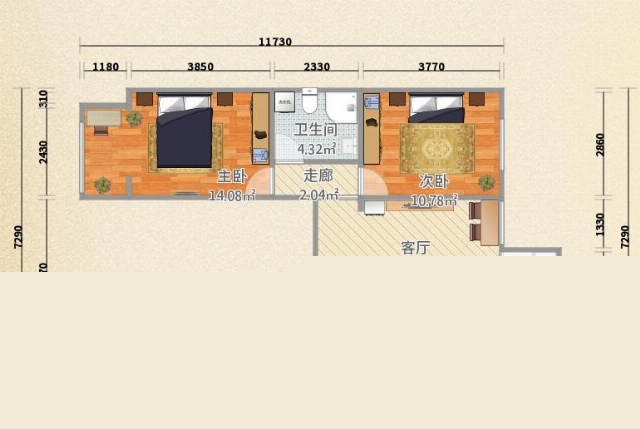 主臥:現(xiàn)代簡(jiǎn)約的布置,溫馨的色調(diào)。