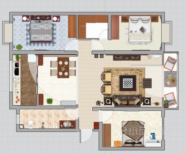 業(yè)主一家四口,夫妻兩人,另有16歲的大兒子和4歲的小兒子,夫妻兩人都鐘情中式風(fēng)格,較喜歡偏紅木的家具,女主人偏愛壁紙,所以綜合考慮下做了這套方案。