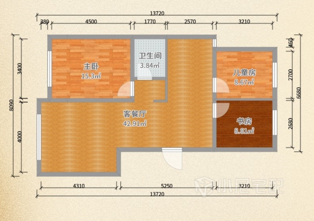 主臥室淺木紋衣柜