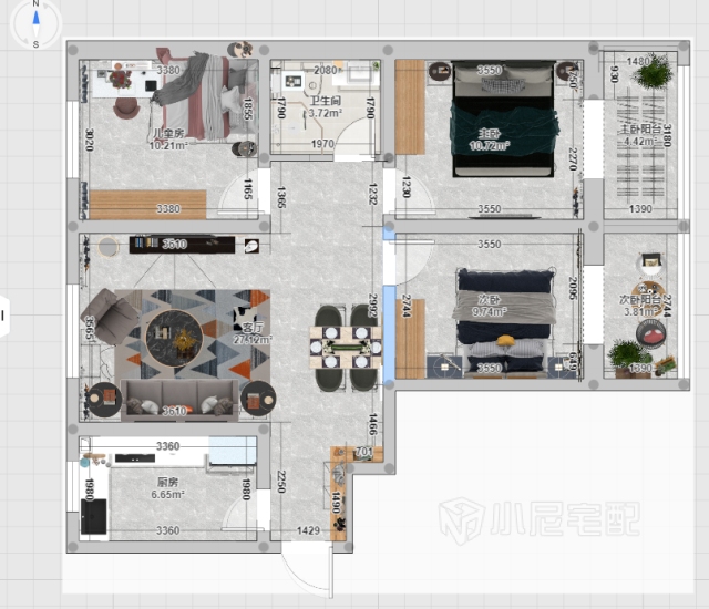 從簡(jiǎn)約出發(fā),色彩我們以白色為主,加以木色的家具,給空間增加了溫度,同時(shí)活動(dòng)家具我們以綠色來(lái)點(diǎn)綴,讓空間更有活力。